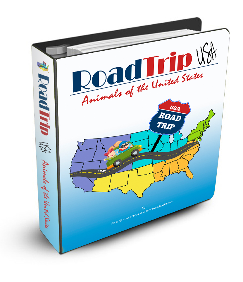 As many of you know, we did a HUGE animal wall last year with our Expedition Earth World Geography curriculum, and this year as soon as we started going through our Road Trip USA curriculum, my kids were asking for animal cards! I thought it would be a fun addition since we had such a great time learning all of our world animals last year, so I put one together.