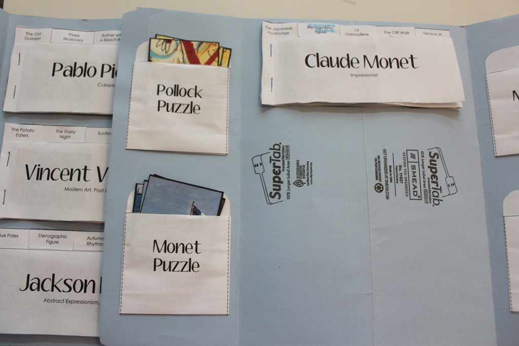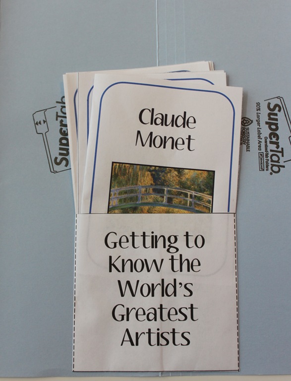 After going over all of Claude Monet’s works in the book, we put the paintings into the mini-book, then added our mini-book to our World’s Greatest Artists lap book.
