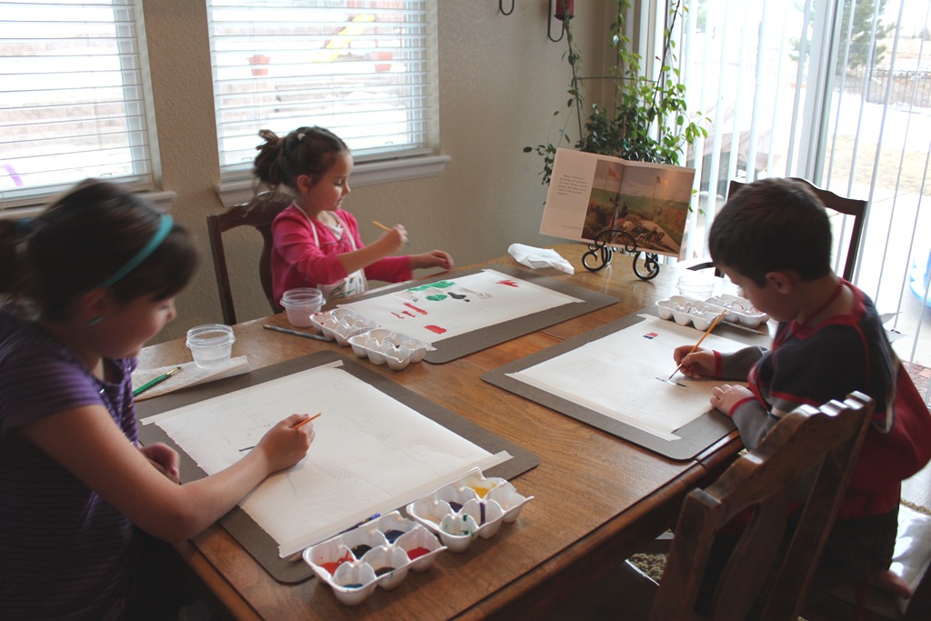 If you haven’t seen the previous posts, this year for art we are studying 8 different world famous artists. We have chosen to do art twice a week, and we’ll cover one artist each month. We’re currently using my World’s Greatest Artists Vol. 1 curriculum!