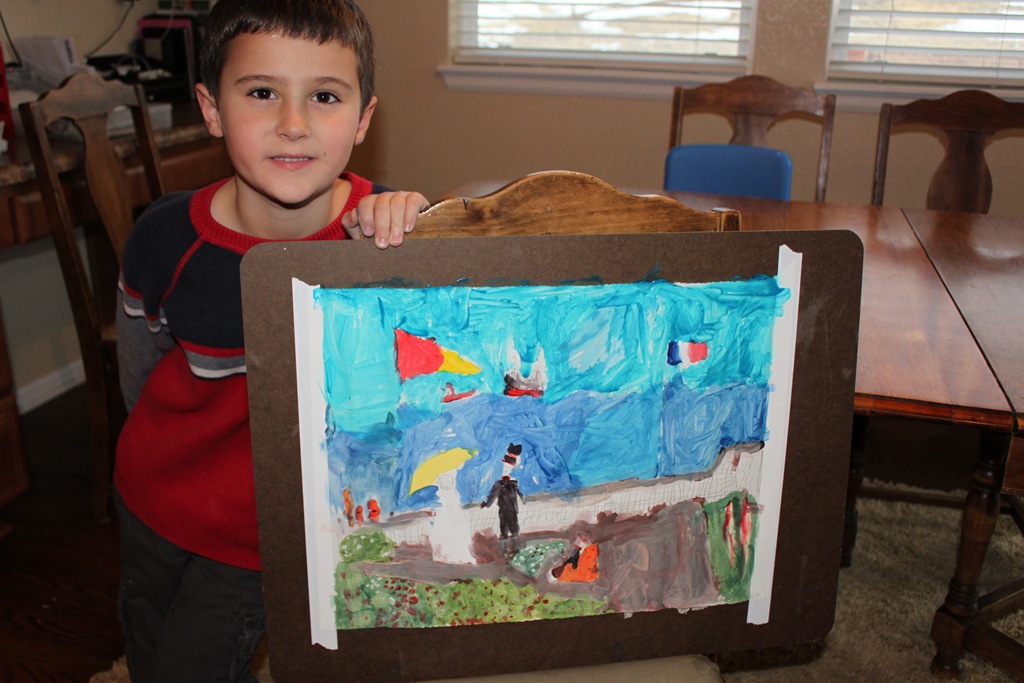 We also tried our hand at painting like Monet. This proved more difficult than expected for the kiddos. To try and make it a little easier I had them draw the scene in pencil first, then paint it.