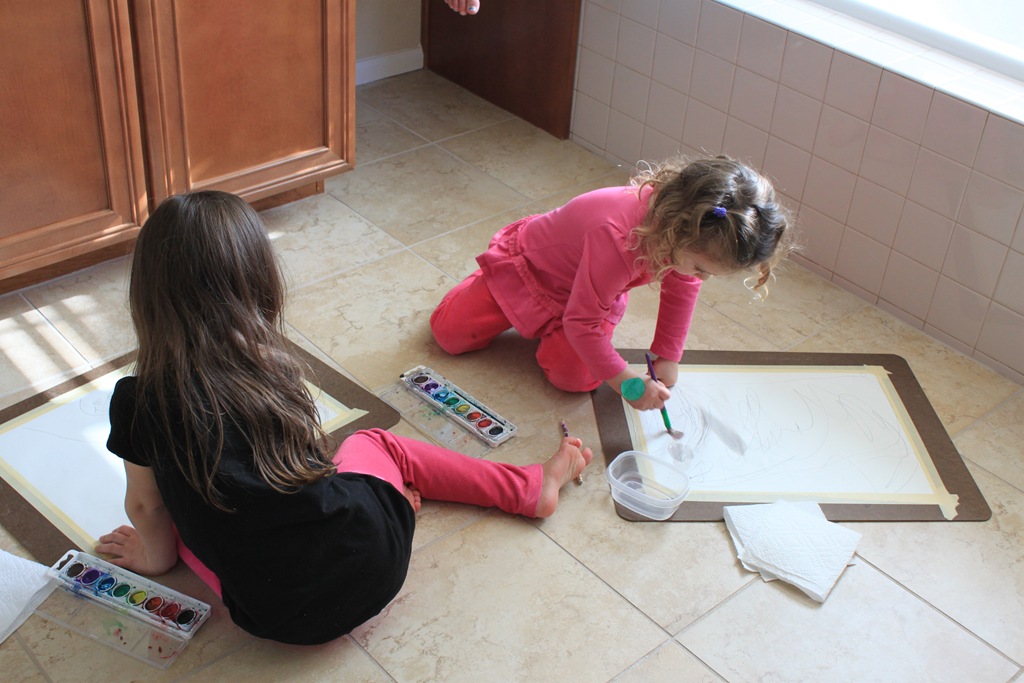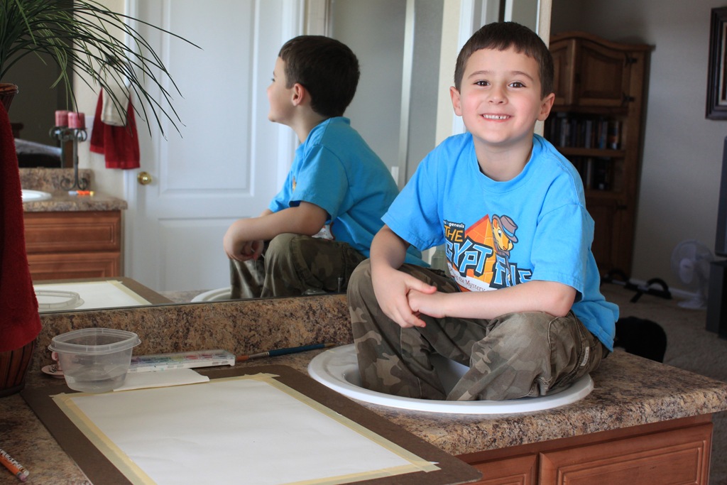 Yes, we are in my bathroom here. I couldn’t figure out a better way to do it, and since there were big mirrors in there…we did our art in the sink!
