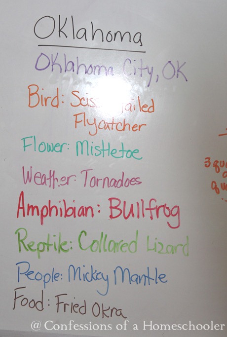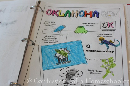 They all completed their state worksheets as we read through all of the Oklahoma state facts in our curriculum.